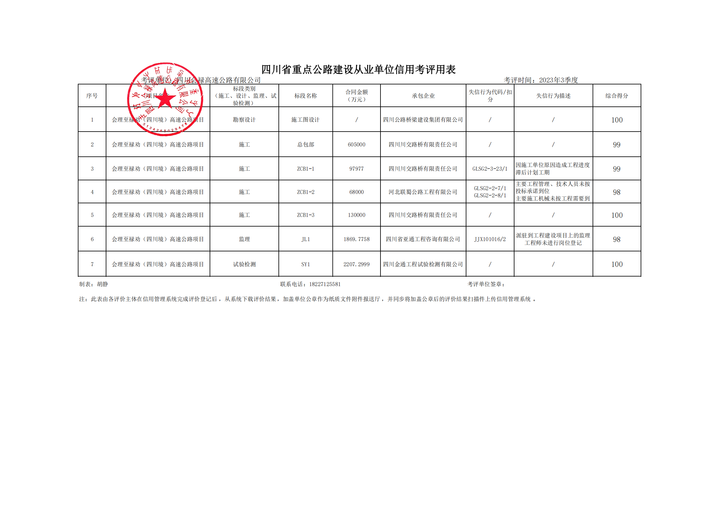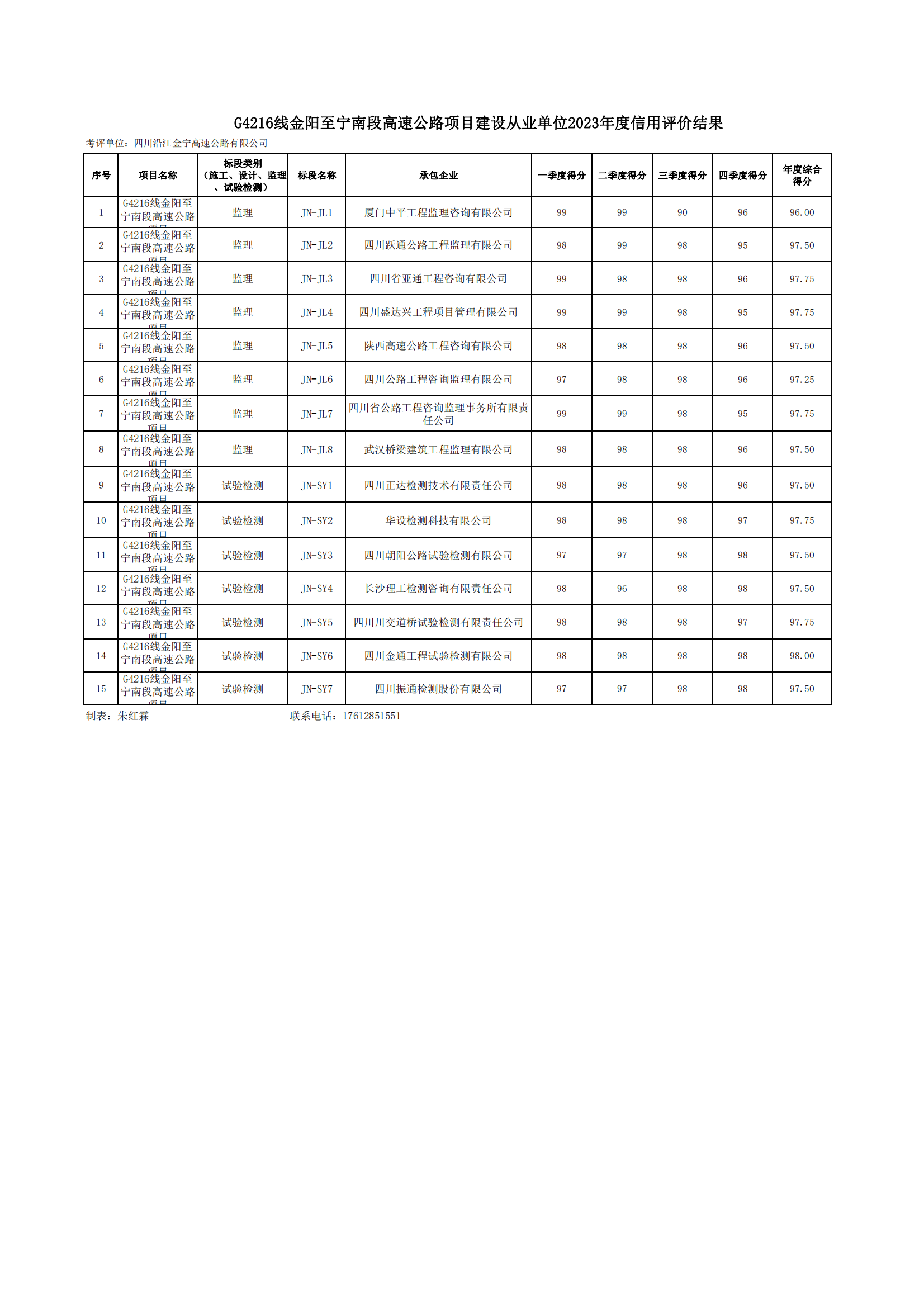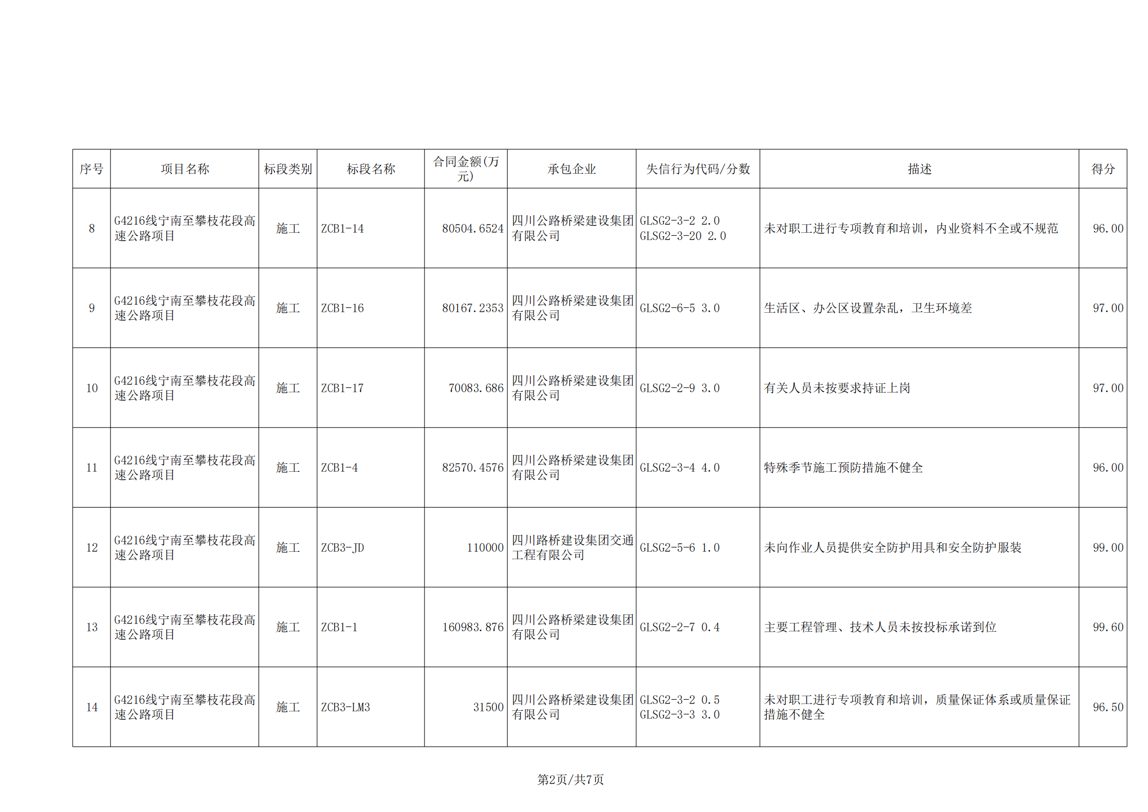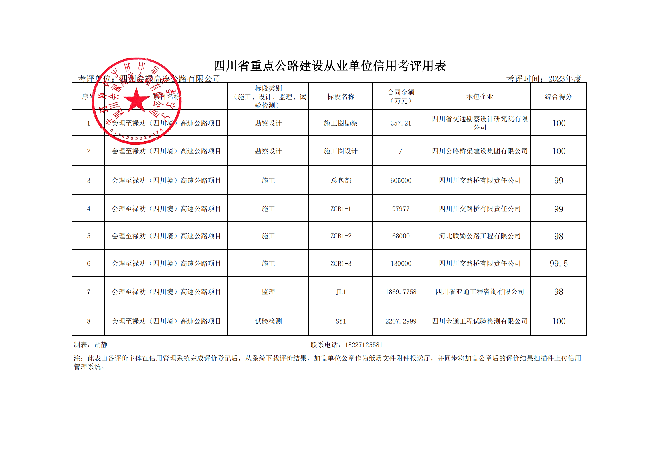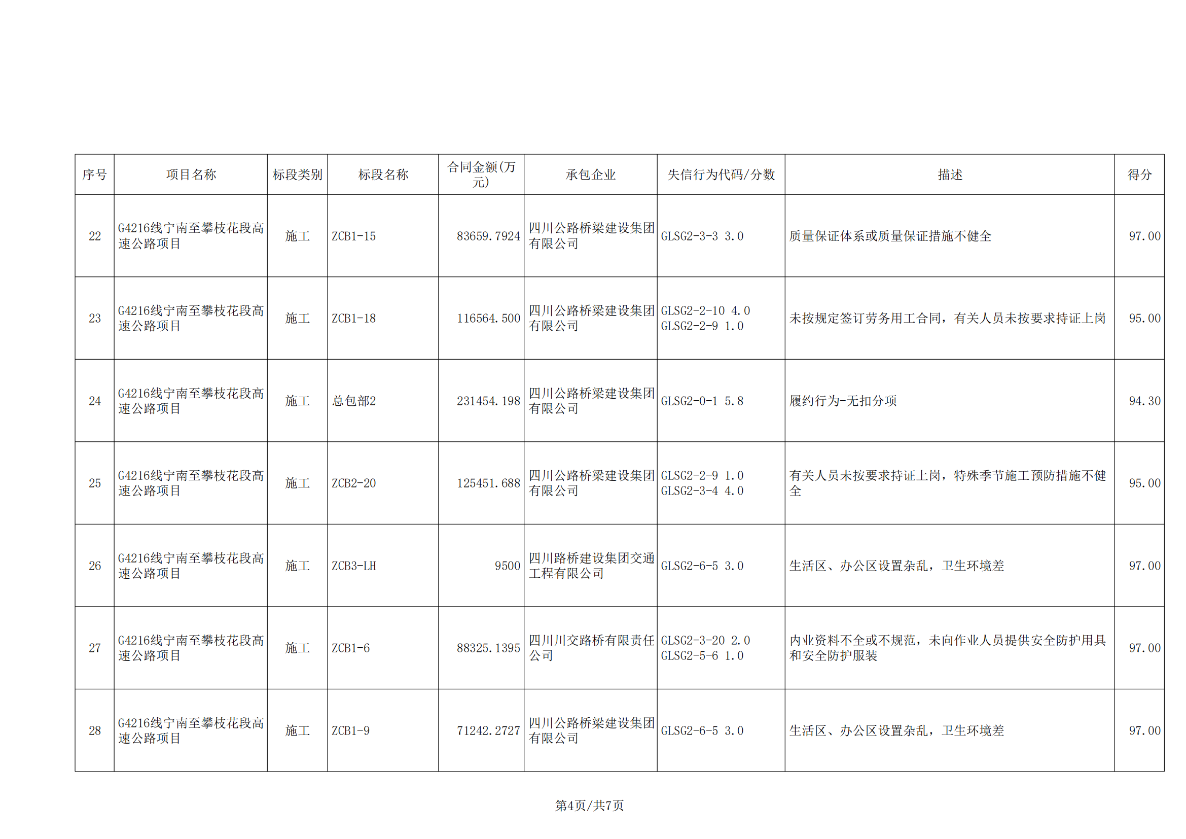 四川沿江攀寧高速公路有限公司 四川沿江金寧高速公路有限公司 四川會祿高速公路有限公司 關于從業單位2023年第四季度及年度信用考核結果公示的通知